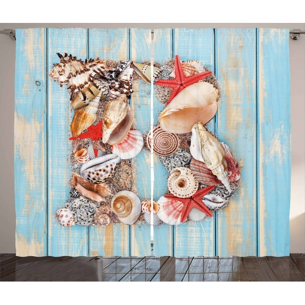 Letter B Curtains 2 Panels Set Alphabet Abc Ocean Theme Elements Starfish Seashell Pale Color Window Drapes For Living Room Bedroom 108w X 108l Inches Pale Blue Ivory Dark Coral By Ambesonne