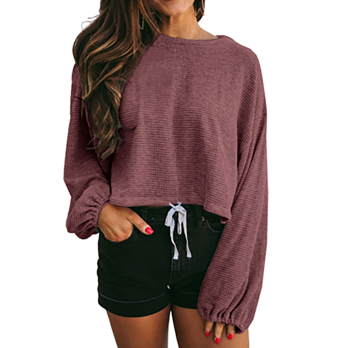 Women S Waffle Knit Long Sleeve Top Oversized Solid Color Pullover Walmart Com